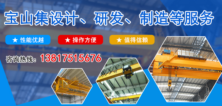 上海宝山起重机械有限公司主要从事轨道式集装箱门式起重机,厂房,单梁桥式起重机、双梁桥式起重机、门式起重机、轻小型起重机、欧式起重机、及起重机的设计、研发、制造、钢结构、厂房销售。